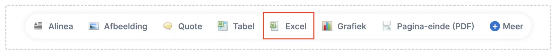 Om de Excel-component toe te voegen selecteer je 'Excel' uit de component-balk.