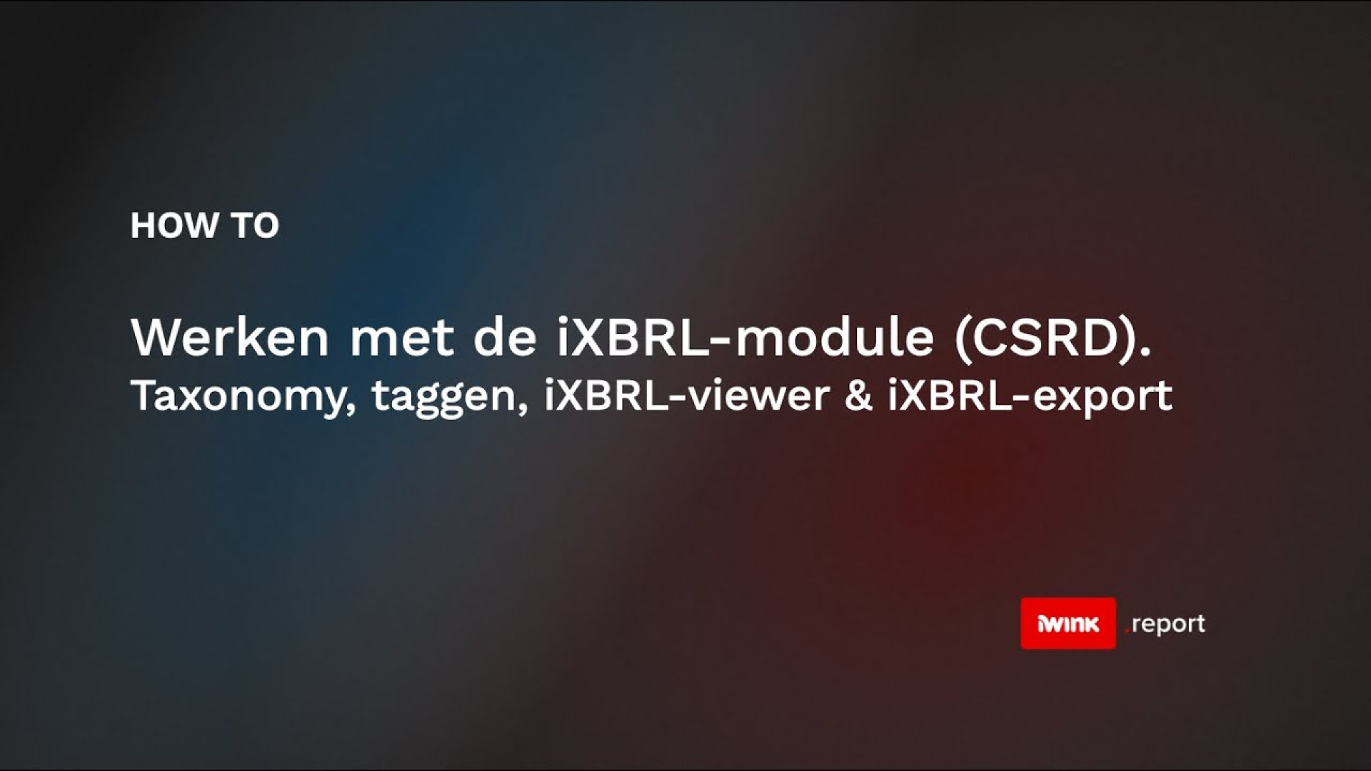 De iXBRL-module zit niet standaard in je pakket. Wil je deze module gebruiken, dan kun je dit aanvragen via je accountmanager of door een mail te sturen naar support@iwink.report. De module is gekoppeld aan een taxonomie. Geef bij je aanvraag ook aan welke taxonomie je wilt gebruiken (bijvoorbeeld CSRD of Jaarverslag Onderwijs).