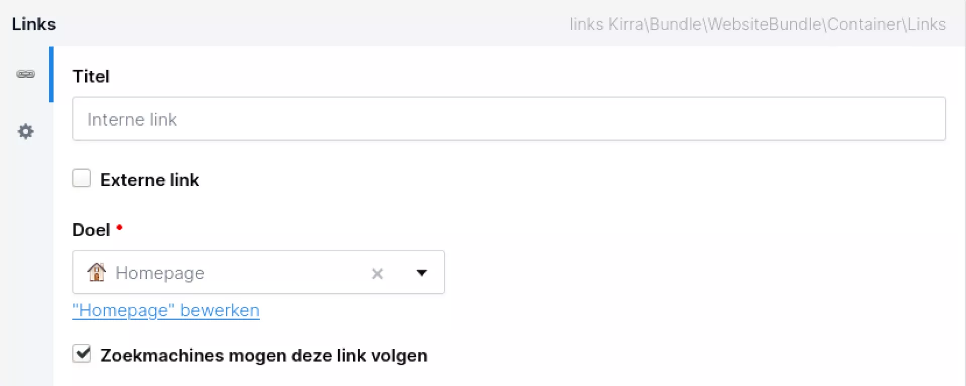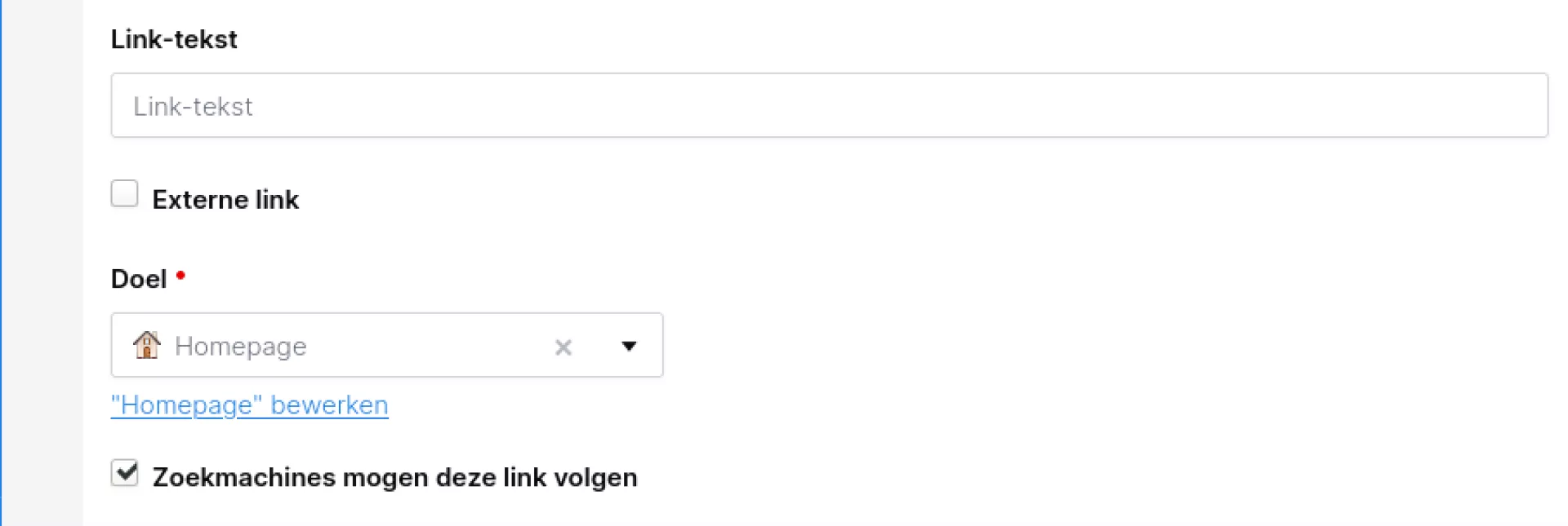 Voor de verwijzingen naar een url buiten je eigen website, gebruik je het tabblad externe link.