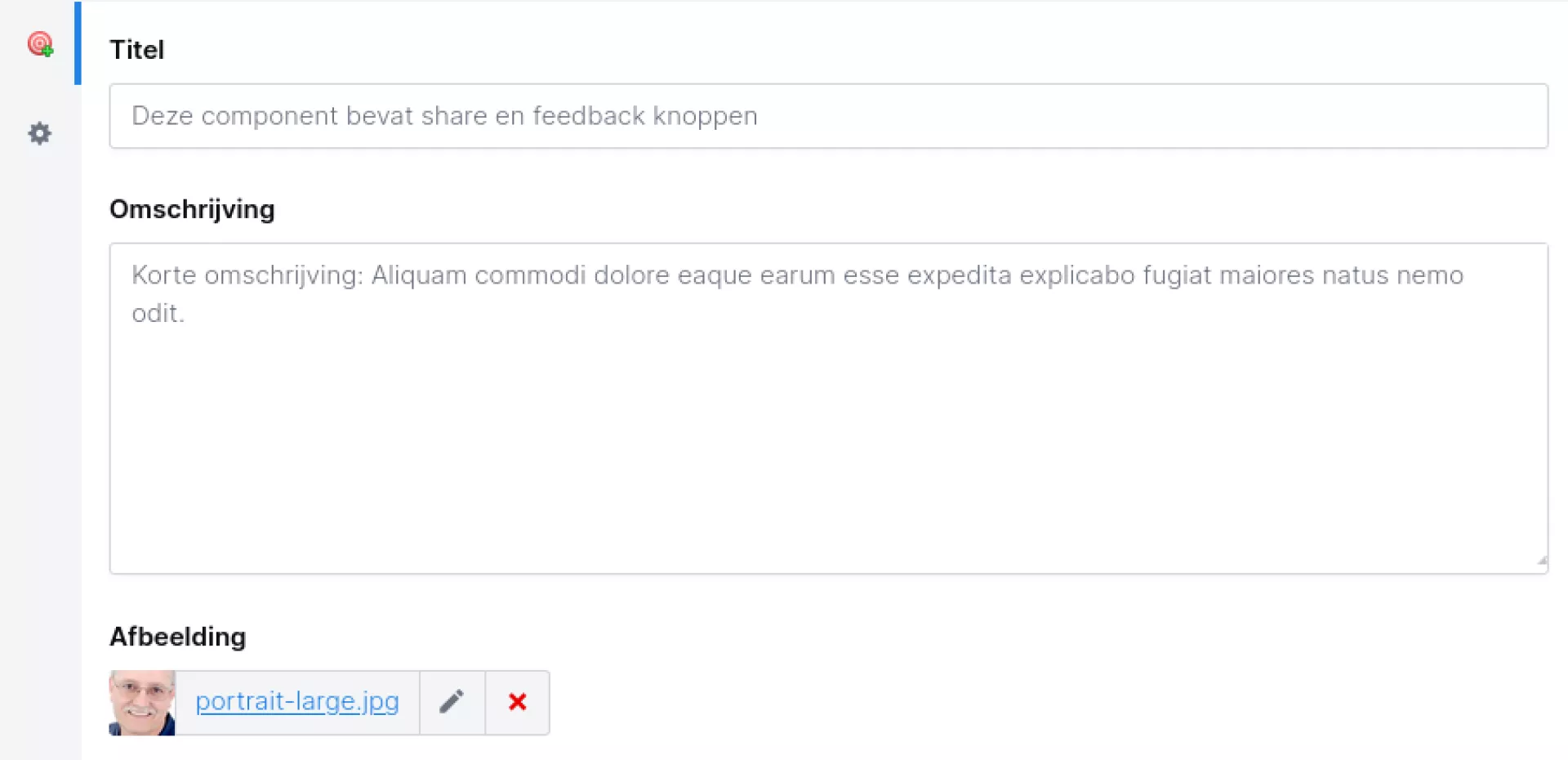 - Afbeelding: Upload een afbeelding uit mediabeheer.