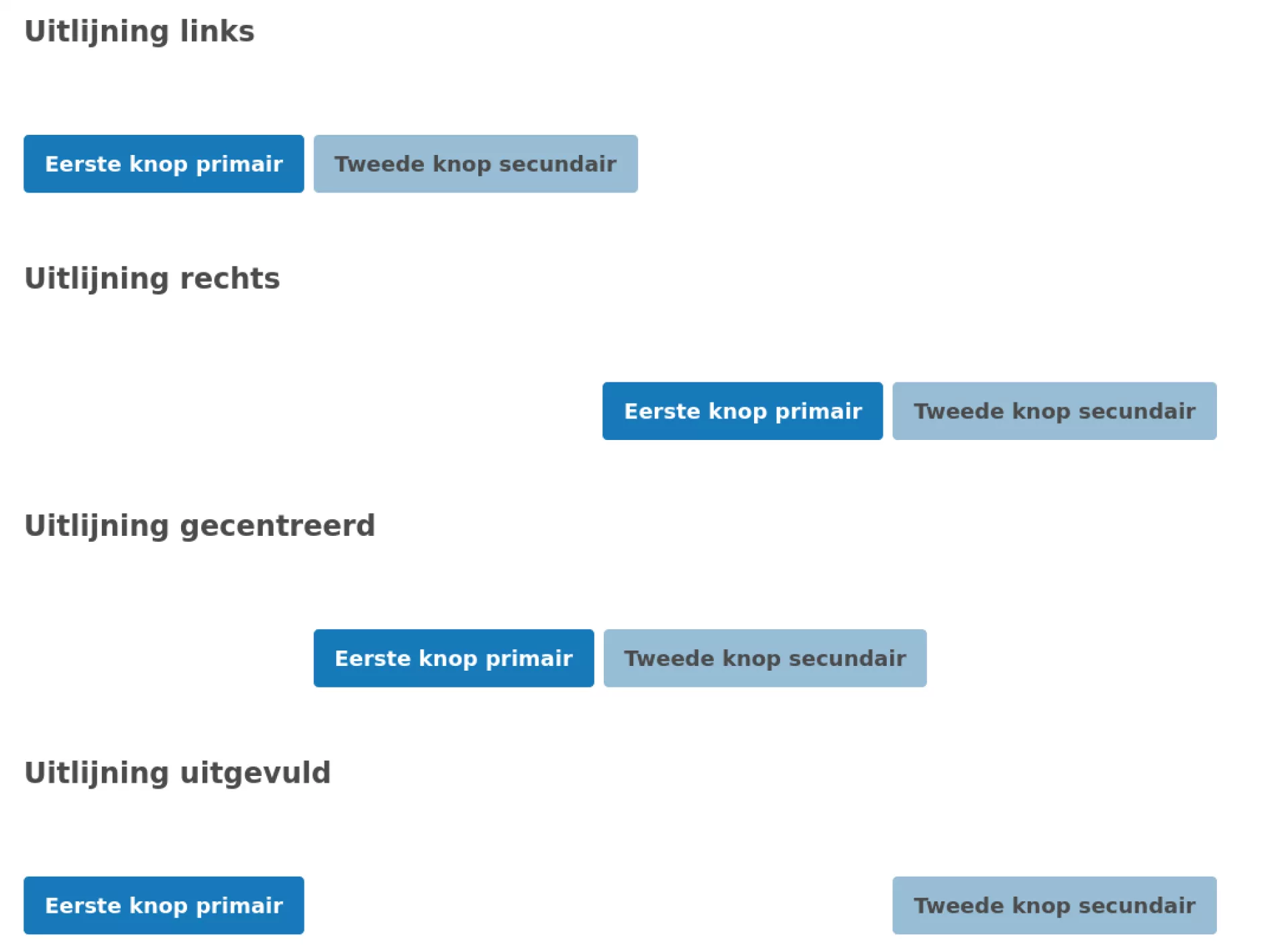 Met deze component kun je meerdere knoppen bij elkaar voegen en uit laten lijnen. De uitlijningsopties zijn "Geen", "Links", "Rechts", "Gecentreerd" en "Uitgevuld".