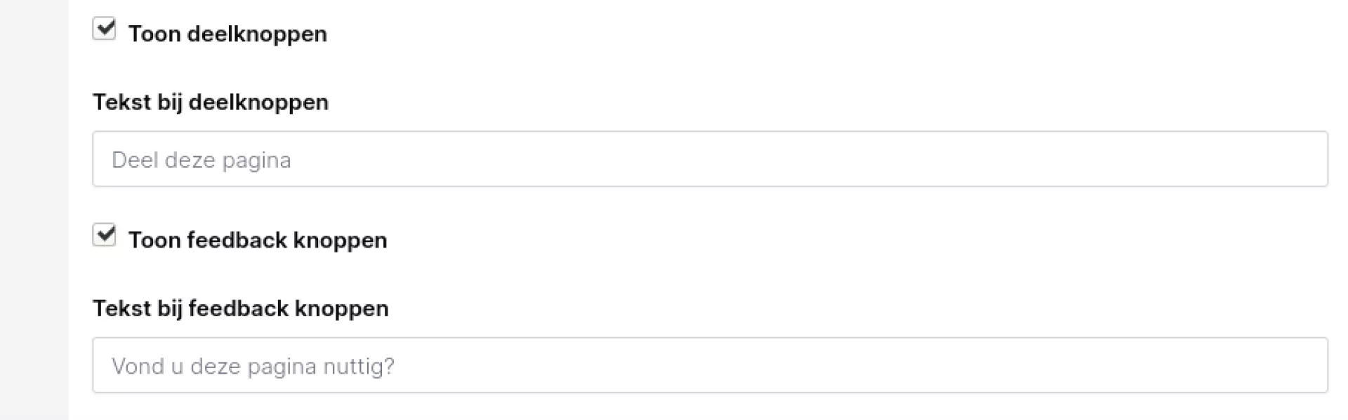 Als laatste kun je nog deelknoppen laten tonen (delen via social media) en feedback-knoppen. Zoals eerder aangegeven, zijn de feedback-knoppen voorzien van data-attributen die je in je Google Tag Manager terug kunt vinden.