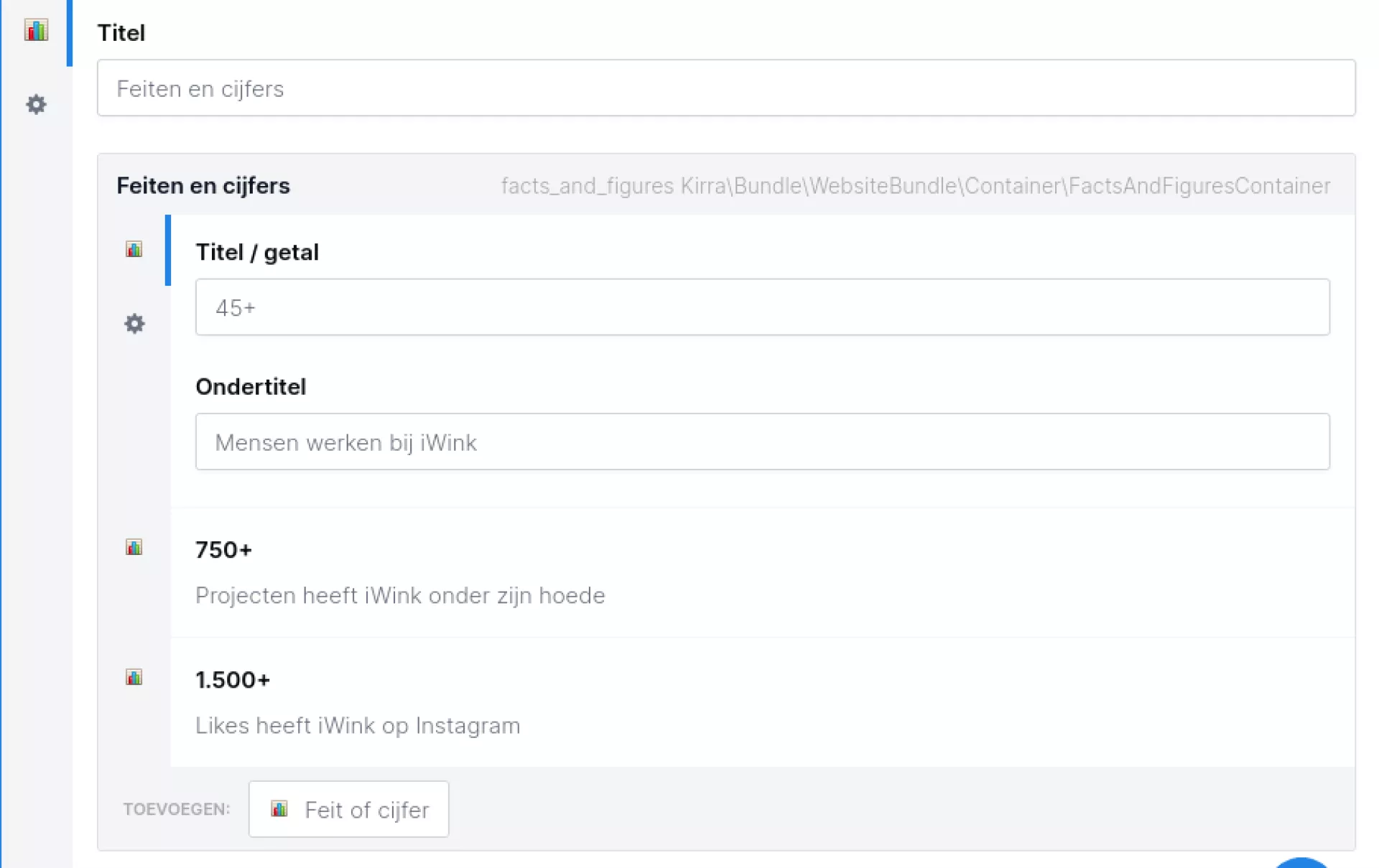- Bevat een container waaraan "Feit of cijfer" componenten kunnen worden toegevoegd.