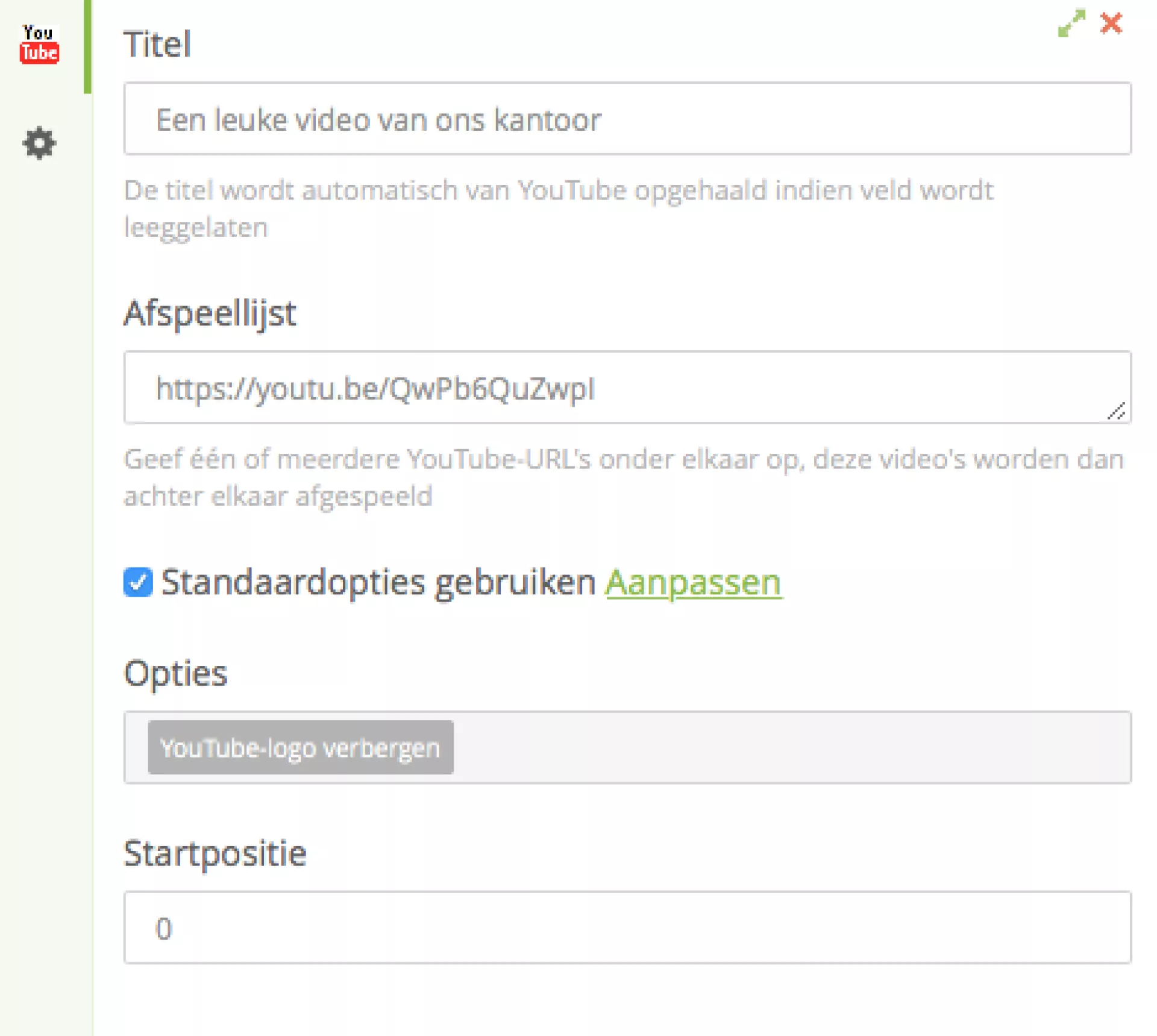 - Standaardinstellingen overnemen (lees meer bij de module YouTube)