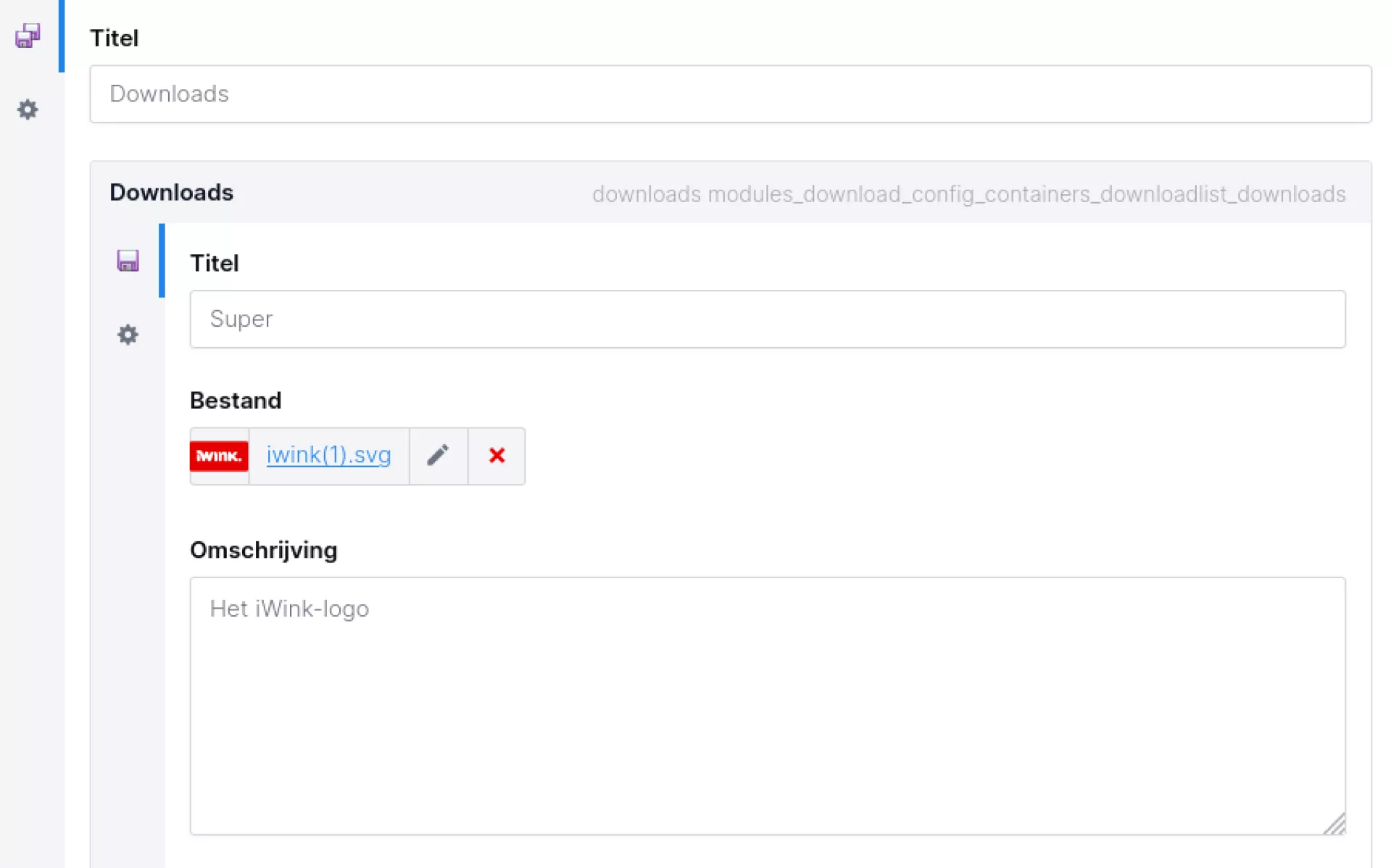 Met deze component kun je een losse download-link of een lijst van te downloaden bestanden toevoegen aan een pagina. Elke download is voorzien van informatie over het type bestand in de vorm van een icoon. Daarnaast kun je ook een omschrijving toevoegen.