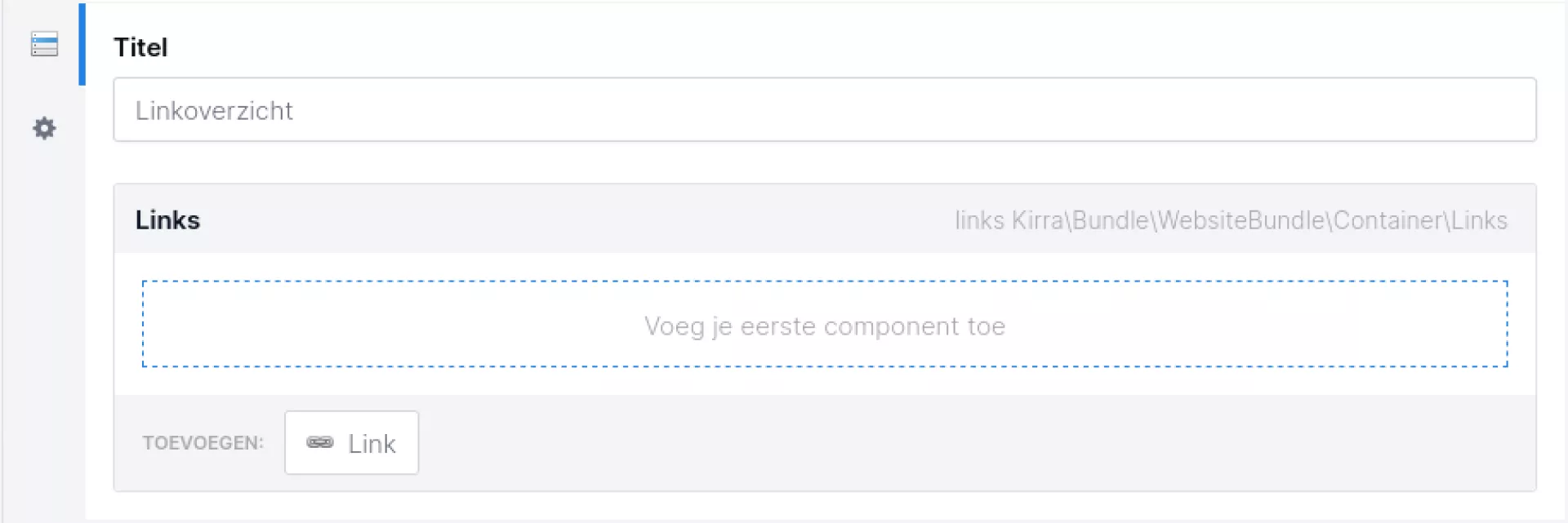 Vervolgens ga je naar de eigenschappen van dit component (via het icoontje met het tandwieltje aan de linkerkant van dit component). Hier kun je nog een aantal eigenschappen invullen: