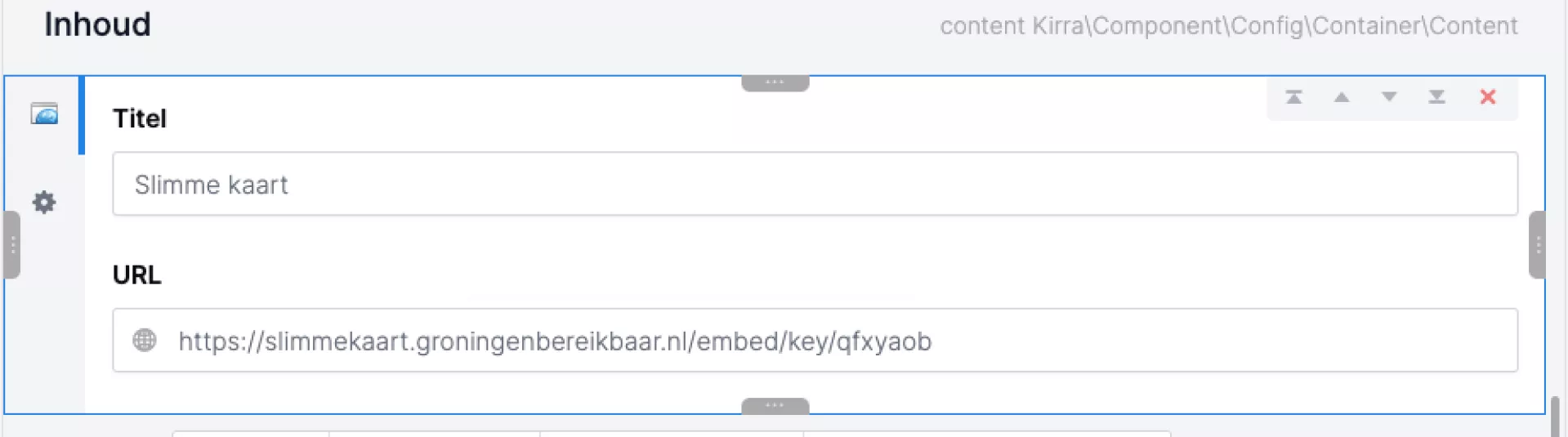 In het veld 'url' vul je de url in van het item dat moet worden ingeladen. De url haal je uit de iframe-url. Het is de url die je ziet staan achter "src=".