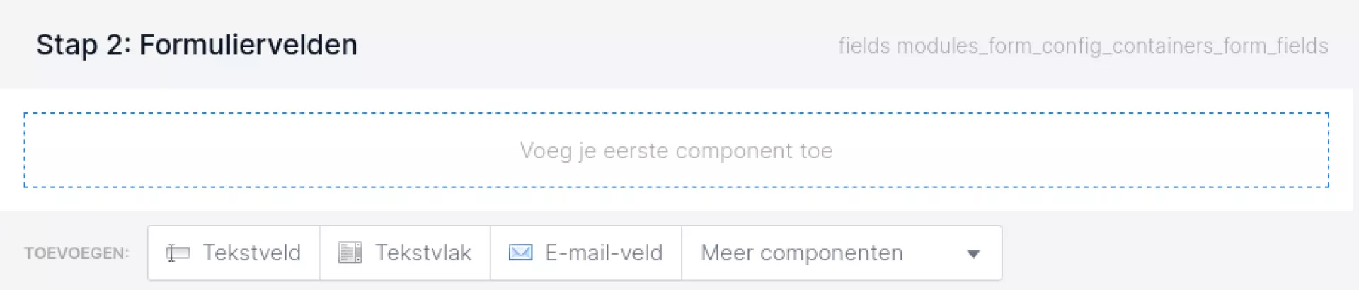 In stap 2 voeg je de verschillende onderdelen van het formulier toe. Hier geef je aan wat er allemaal ingevuld kan worden. Je hebt hier een groot aantal opties: