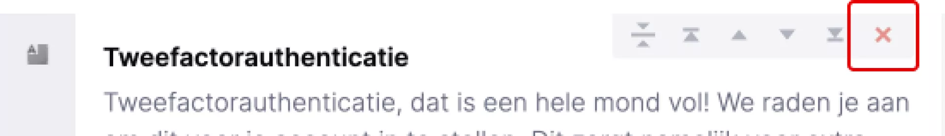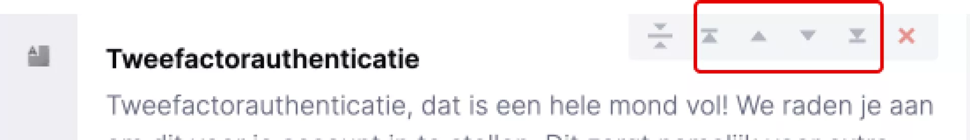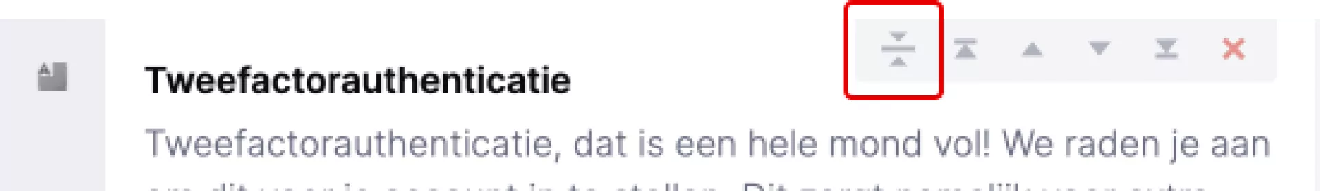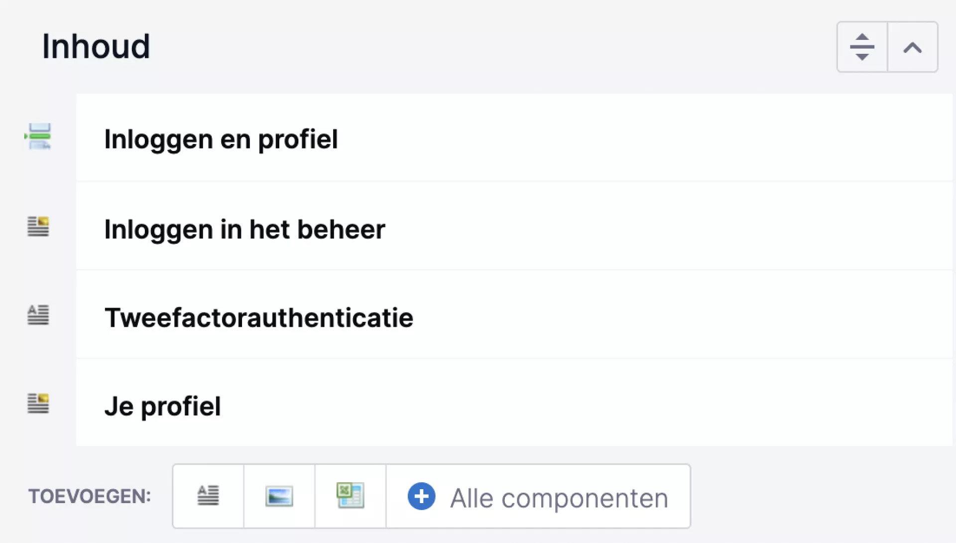 Heb je een component dat erg veel ruimte inneemt? Klik dan op de icoontje uit het screenshot hiernaast. Je ziet op dat moment alleen nog de titel van de component. Op deze manier creëer je meer overzicht in het CMS.
