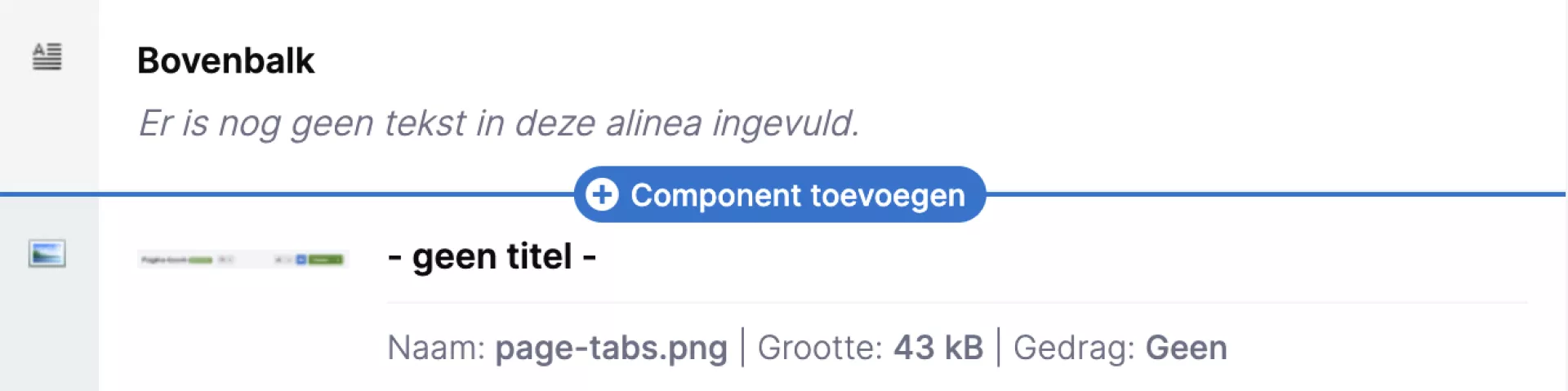 Als je nog niet op een component hebt geklikt dan zie je een preview van de inhoud van dat component.