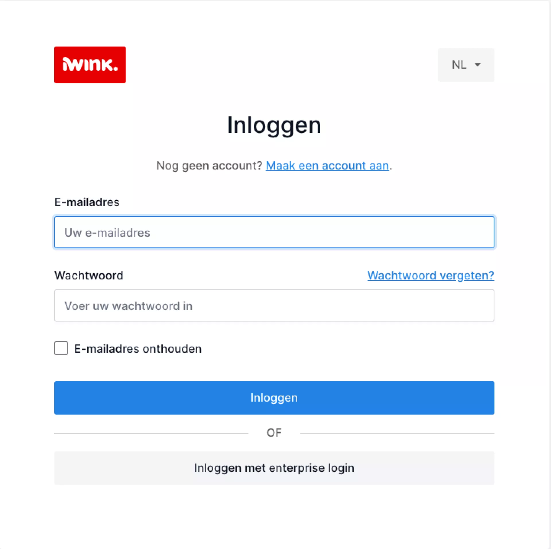 Als je nog niet bent ingelogd dan kom je op een inlogscherm. Op het inlogscherm kun je met je e-mailadres en wachtwoord inloggen.